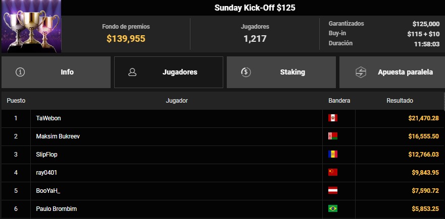 Por su parte, el reconocido Luis Figallo, compitiendo bajo alias «TaWebon», volvió a demostrar por qué es un nombre de peso en el circuito. Figallo se impuso en el Sunday Kick-Off $125, uno de los torneos más prestigiosos de GGPoker, que reunió a 1,217 jugadores y destaca por su exigente estructura técnica.