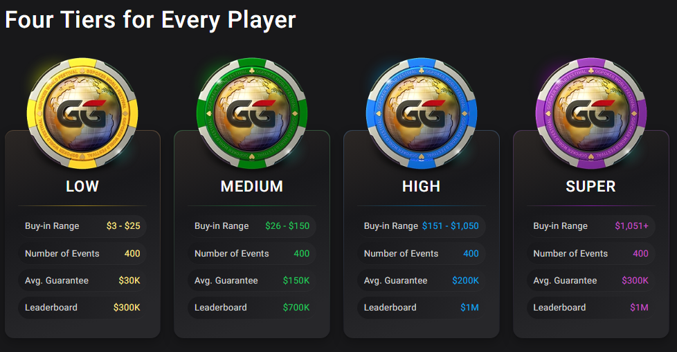 Para incentivar a los jugadores que compiten día a día, GGPoker repartirá $3.000.000 adicionales en tablas de clasificación. Lo mejor es que cada nivel (Low, Medium, High y Super) tiene su propio ranking, asegurando que los premios extra se repartan de forma justa entre los jugadores de cada categoría.
