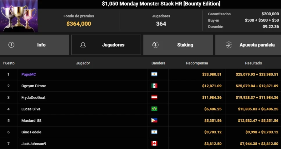 El torneo fue un éxito total, juntando a 364 jugadores y armando una bolsa de premios de $364,000. Pero lo que realmente impresiona no es solo que Papo quedó primero, sino la forma en que lo hizo.
